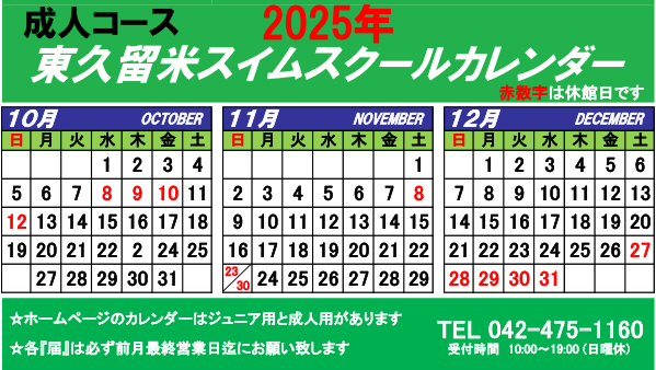 成人コースカレンダー
