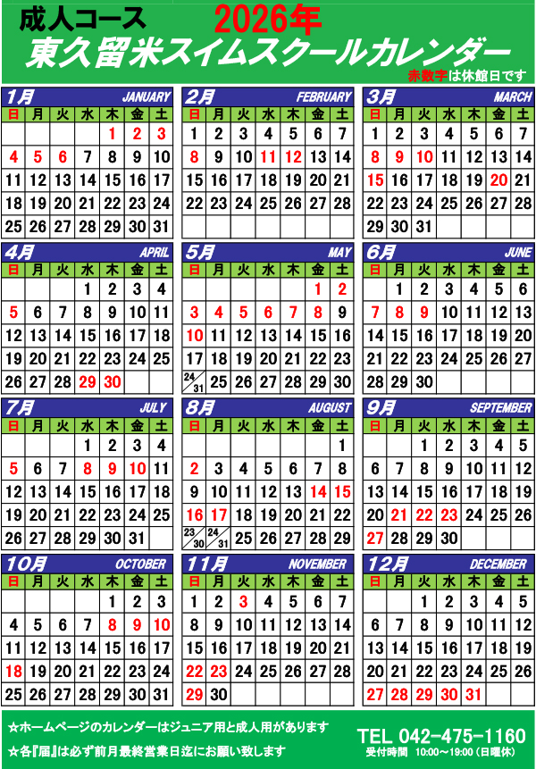 成人コースカレンダー